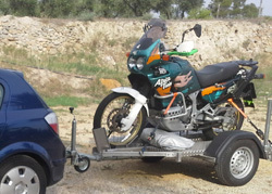 Kaum produziert und dem Kunden übergeben, erreichte uns einige Tage später Nachricht aus Südspanien. Die Jungfernfahrt haben der Anhänger "Solo" und die Honda prächtig
